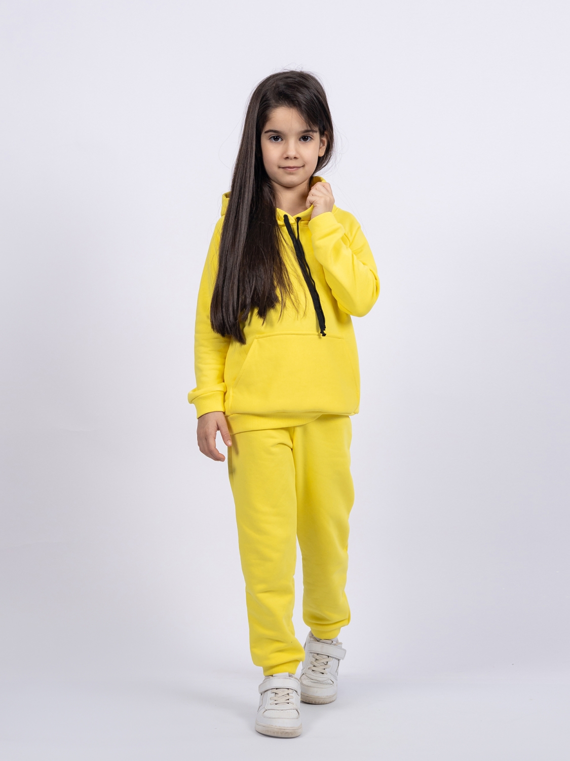 311-Ж. Свитшот с капюшоном + Штаны, хлопок 65%, 35% ПЭ, 3-х нитка ( без начеса) желтый 98,104,110,116
