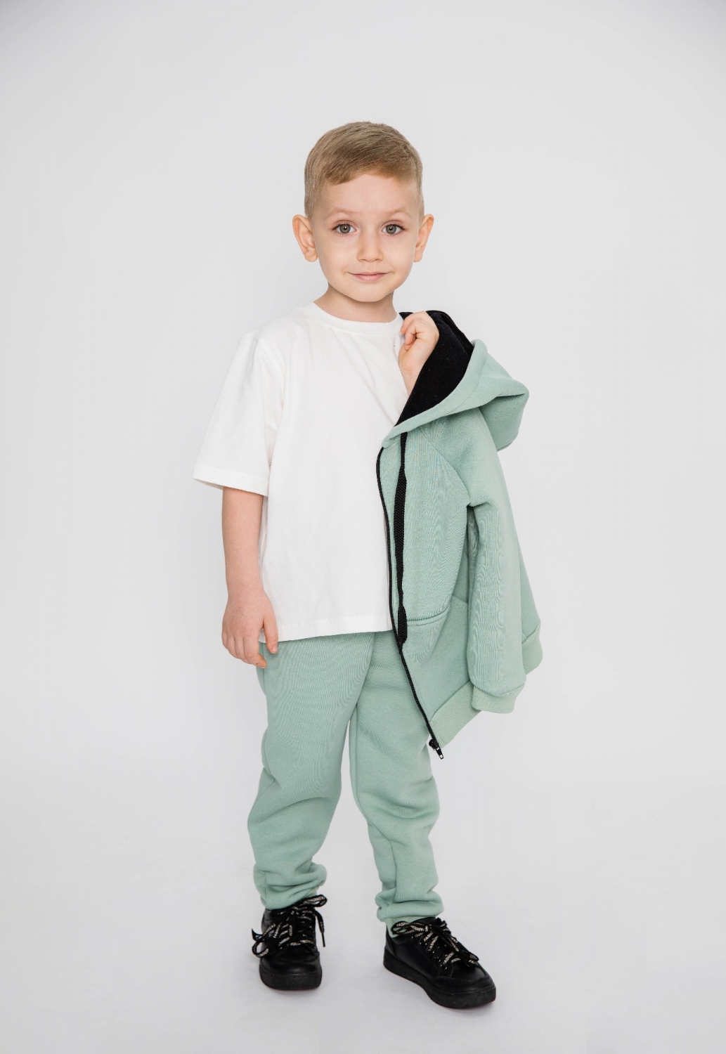 319-ОЛ. Костюм детский на молнии, олива, хлопок 65%, 35% ПЭ, 3-х нитка (начес) 98,104,110,116